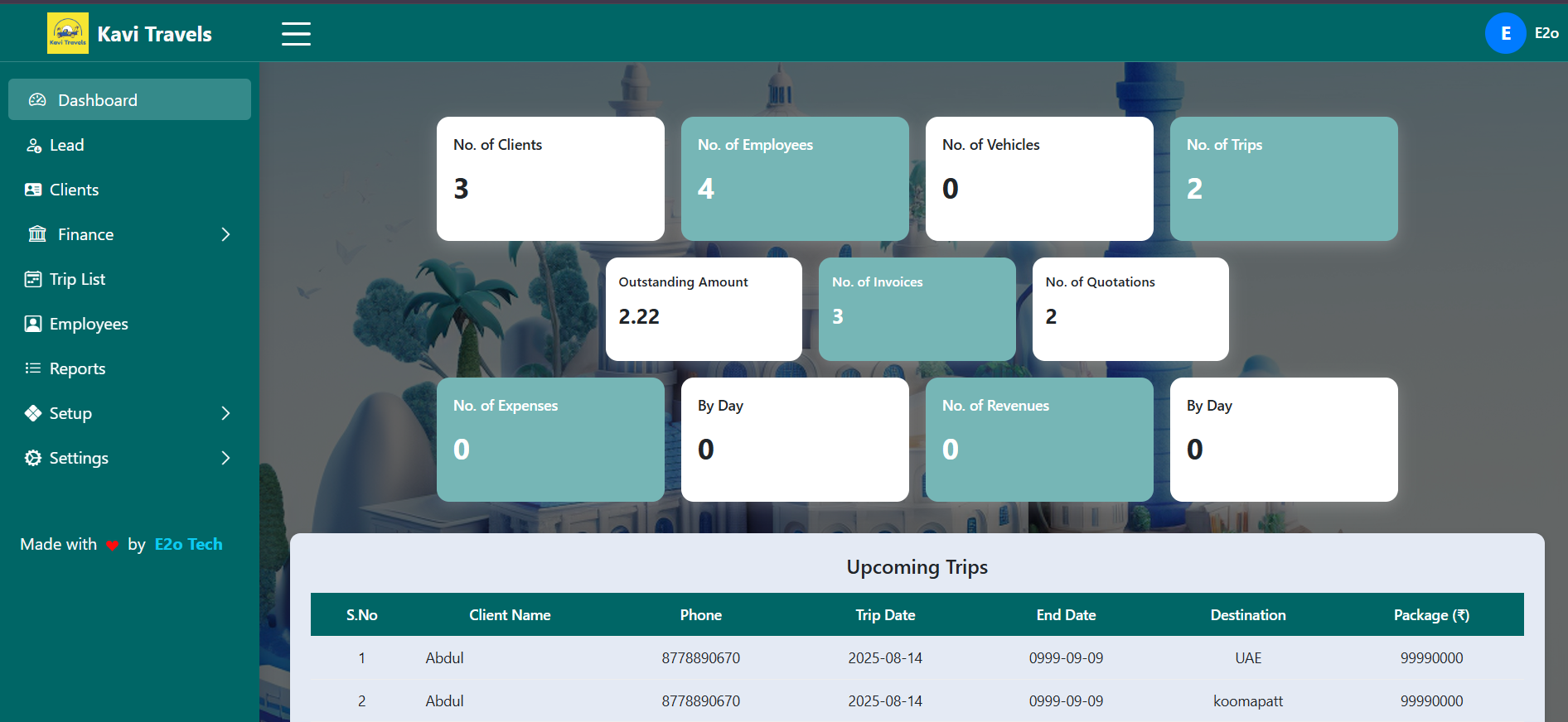 The Travel Management System (TMS) by E2o Technologies is an intelligent, end-to-end solution that simplifies the entire travel lifecycle—from planning and booking to approvals, expense management, and reporting. It eliminates the need for manual coordination with travel agents or fragmented tools, offering a single digital platform for employees, managers, and administrators.